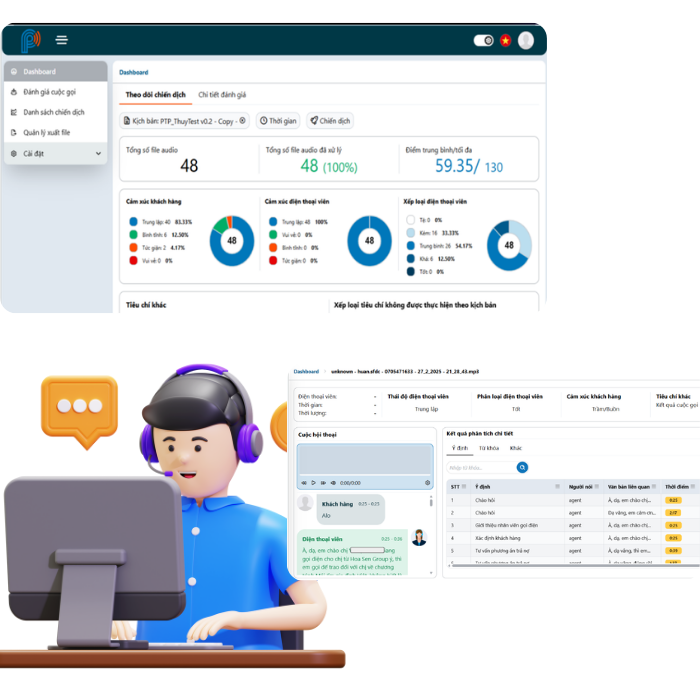 Nâng cao chất lượng dịch vụ: Quản lý hiệu suất agent, đánh giá cuộc gọi tự động giúp nâng chuẩn chất lượng dịch vụ tổng thể.