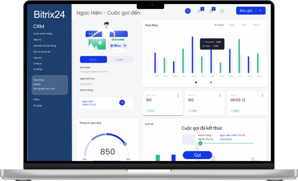 - Call Pop-ups: Thông tin khách hàng tự động được hiển thị tự hệ thống tổng đài qua CRM