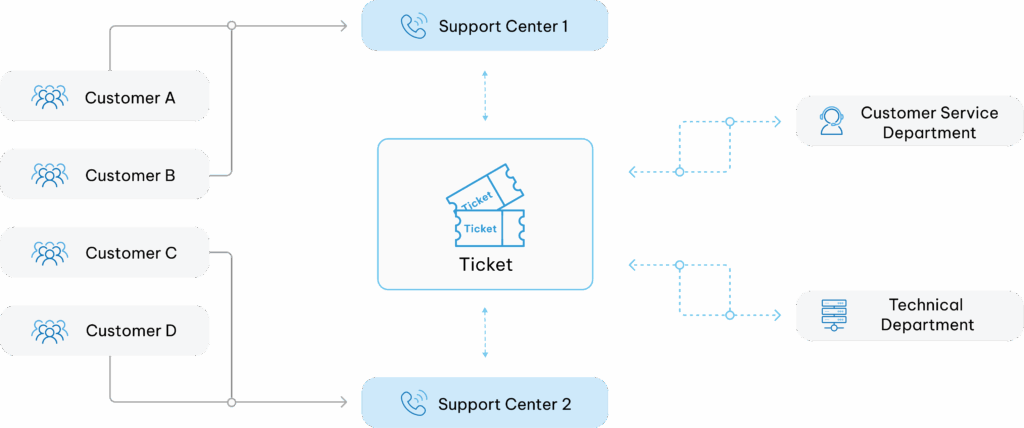 Requests from customers are recorded as “tickets” in the management system.